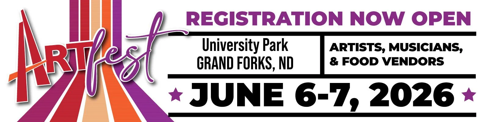 The 25th Annual ArtFest, June 6–7 at University Park in Grand Forks, draws thousands of art lovers, families, and community members each year. As a sponsor, your support helps showcase talented artists, create engaging hands-on experiences, and bring two full days of art, music, and fun to the heart of the community. Sponsorships—ranging from full to partial—offer a unique opportunity to connect your brand with creativity, community, and culture.