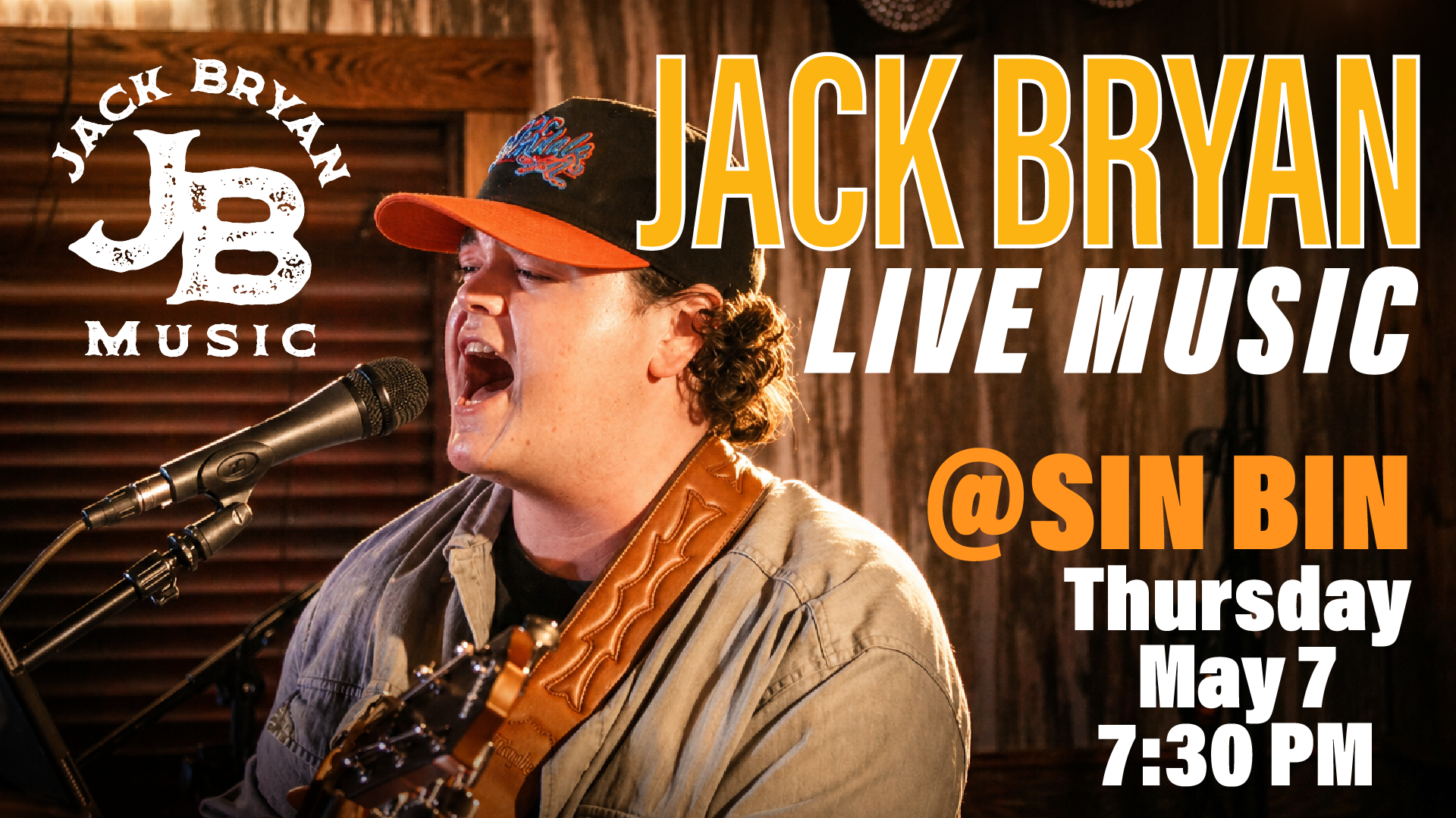 Jack Bryan is heading back to the Sin Bin on Thursday, May 7 at 7:30PM. Known for his upbeat energy and engaging stage presence, Jack brings a mix of crowd-favorite covers and original songs that blend folk and pop influences. It’s the perfect way to kick back, enjoy live music, and spend the evening with friends!