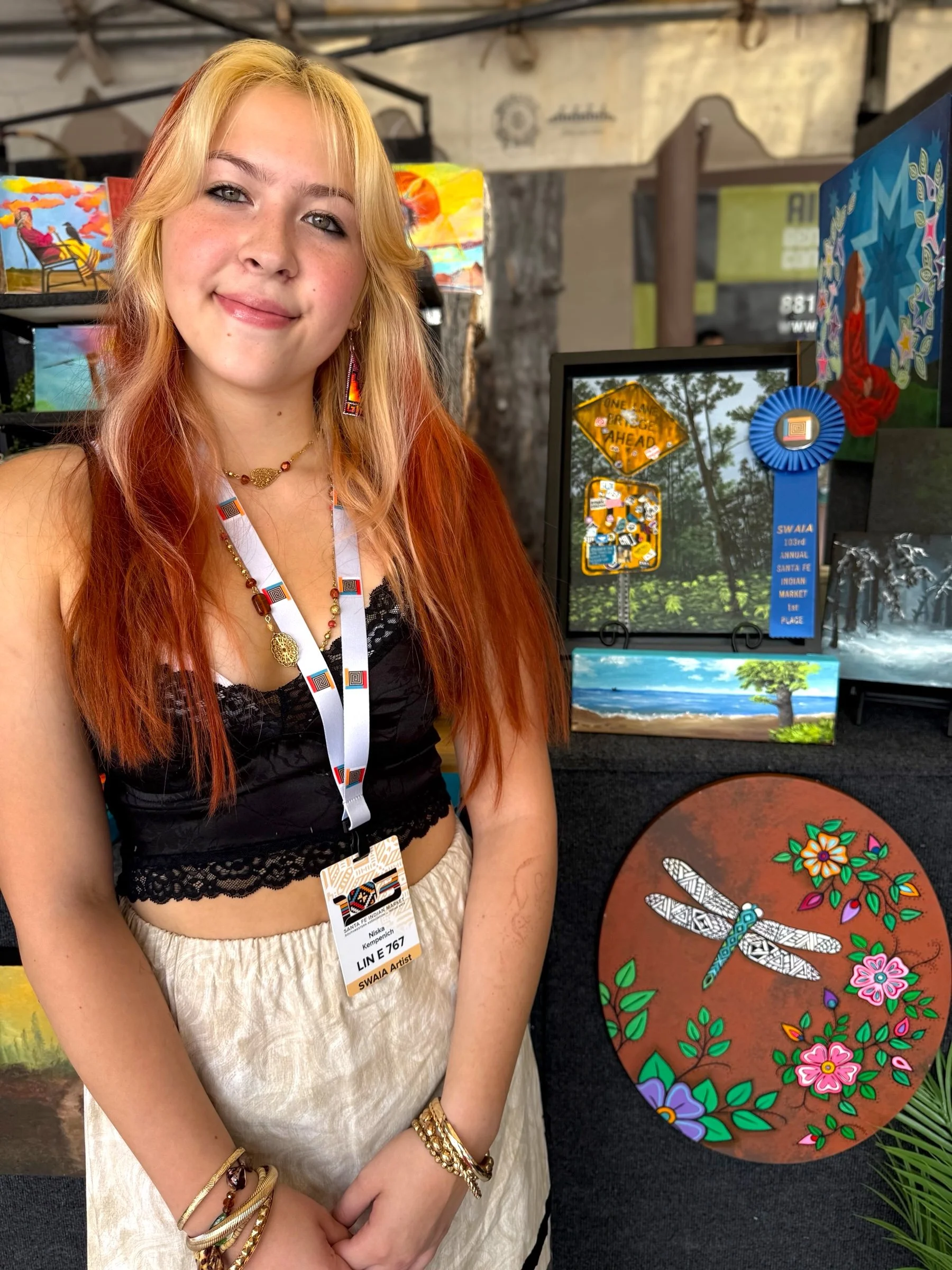 Santa Fe, N.M. — Red River High School senior-to-be Niska Kempenich has been awarded first place at the 103rd Southwestern Association for Indian Arts (SWAIA) Indian Market, earning her first blue ribbon for her painting “One Way.”